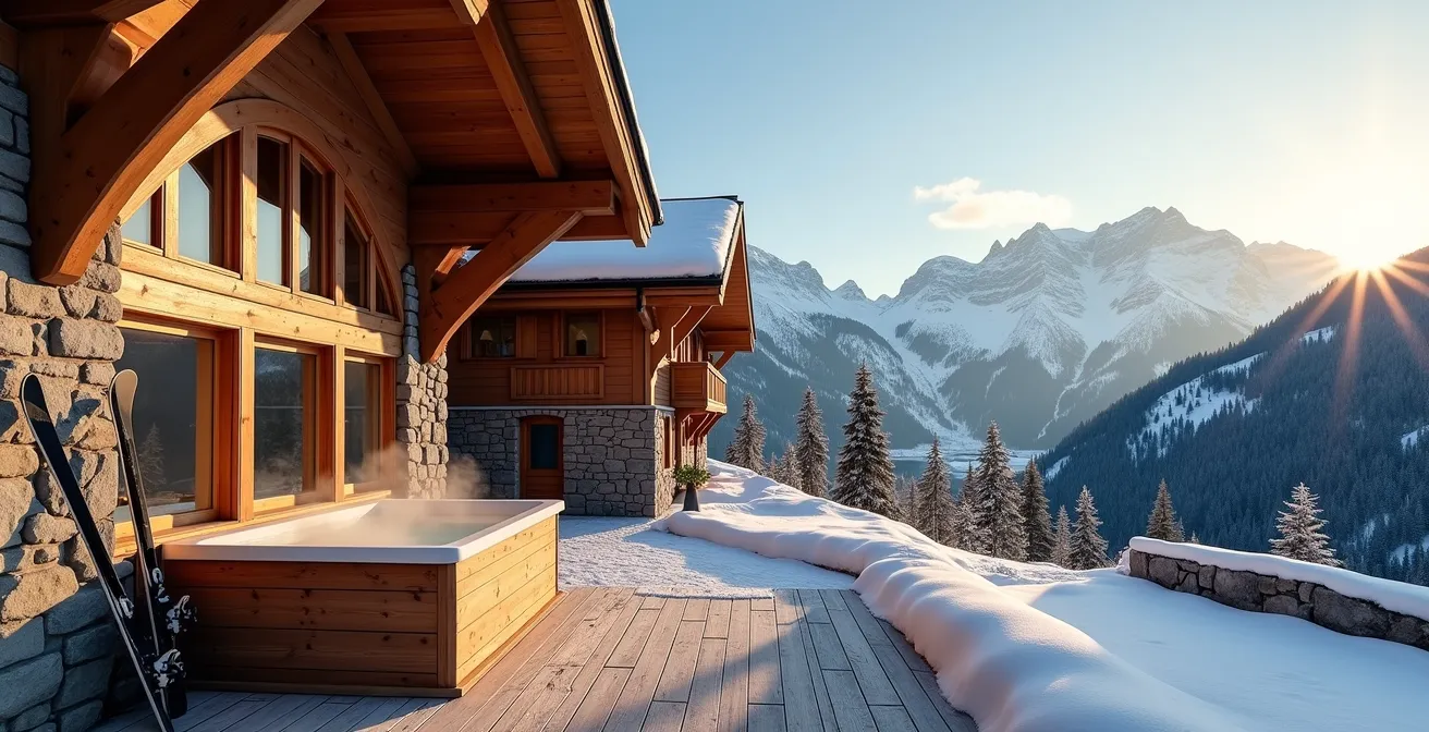 La véritable tendance n’est pas le bas prix, mais la transformation d’édifices patrimoniaux en cocons de luxe. De nombreux chalets d’exception sont en réalité d’anciennes fermes ou granges savoyardes méticuleusement restaurées. Ces projets conservent l’âme du lieu – les vieilles pierres, les charpentes massives en bois – tout en intégrant des équipements de pointe : cuisines semi-professionnelles, salles de cinéma, et bien sûr, des espaces spa complets. Le prix reflète cette double valeur : le coût de la rénovation d’un bâtiment historique et le niveau de service 5 étoiles.